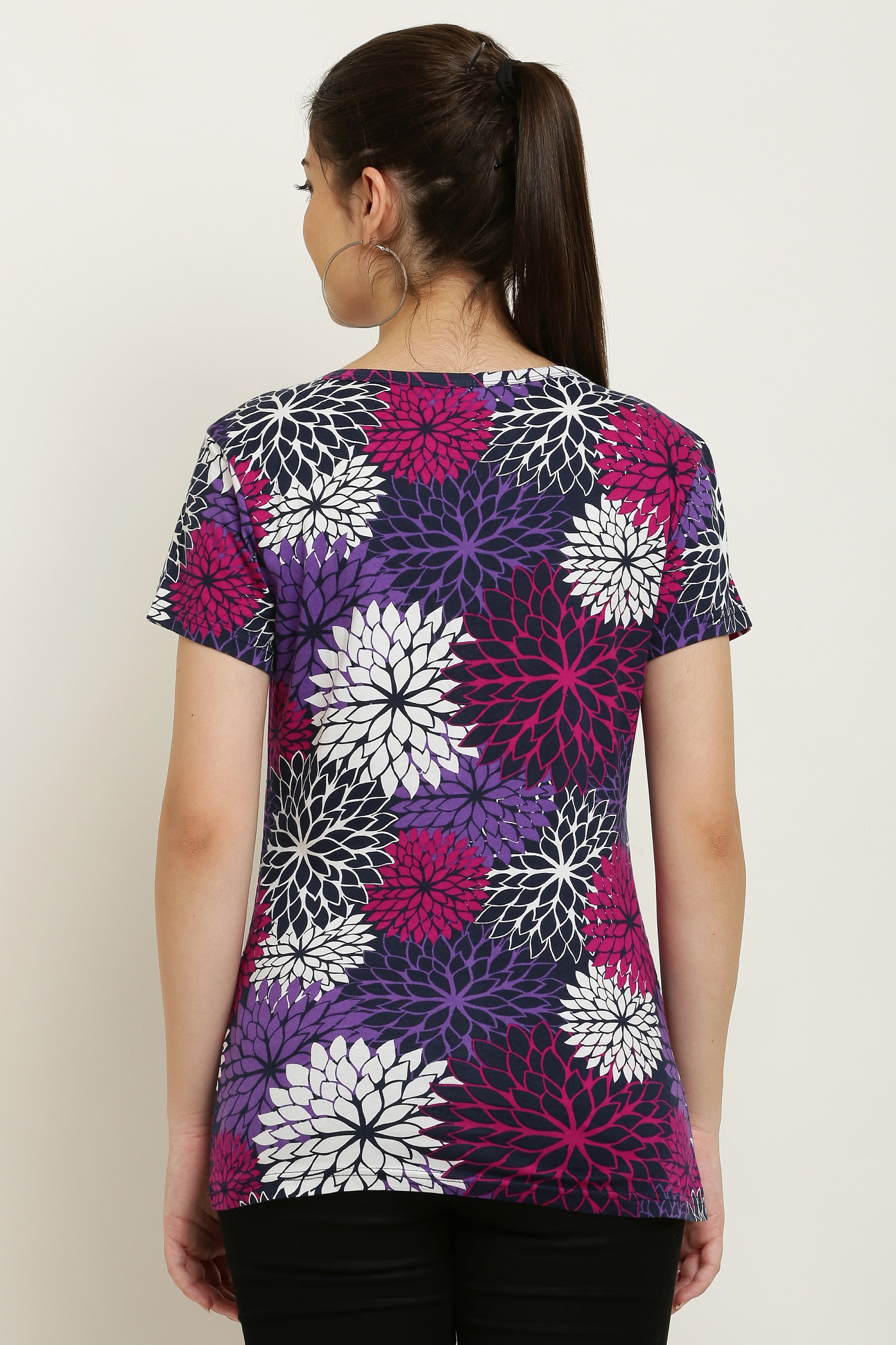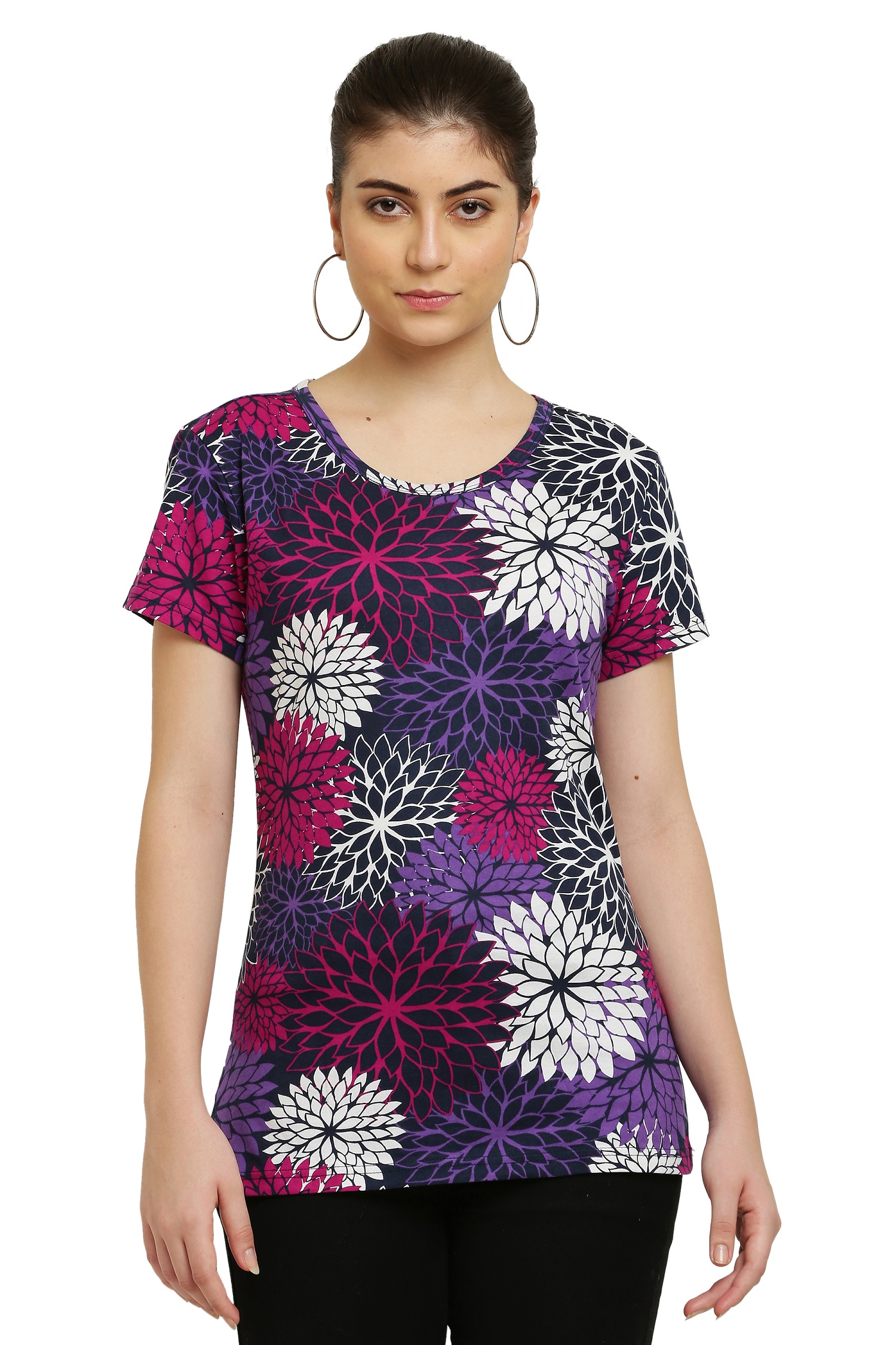 Women Printed Round Neck Viscose Rayon Multicolor T-Shirt (Copy)